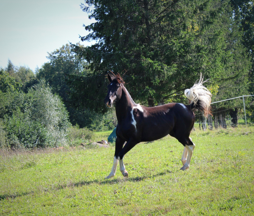 Na sprzedaż oferuję wałacha 1,5 roku, rasy typ szlachetny, maści siwosrokatej, po ojcu M-Hidalgo i matce Rawie. Koń o łagodnym usposobieniu, lgnie do człowieka, chętnie nawiącuje kontakt i z łatwością się uczy. Jest otwarty na współpracę z człowiekiem, ale wymaga doświadczonej osoby, która potrafi jasno i konsekwentnie wyznaczyć granice. Jak na młodego konia przystało, co jakiś czas testuje, na ile może sobie pozwolić. Regularnie werkowany, odrobaczany oraz szczepiony, przyzwyczajony do codziennych zabiegów pielęgnacyjnych. Utrzymywany w systemie wolnowybiegowym, zimą sprowadzany na noc do boksu. Sprzedaję tylko w dobre i odpowiedzialne ręce. Koń przebywa w miejscowości Świętochowo, kilka km od Braniewa.
