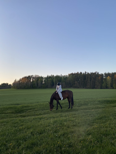 To koń, który kocha skoki – zawsze po drugiej stronie przeszkody. W ujeżdżeniu radzi sobie solidnie, ale to parkur jest jej żywiołem. W terenie i na zawodach lubi być pierwsza – ambitna, energiczna, ale jednocześnie bardzo bezpieczna i zrównoważona.