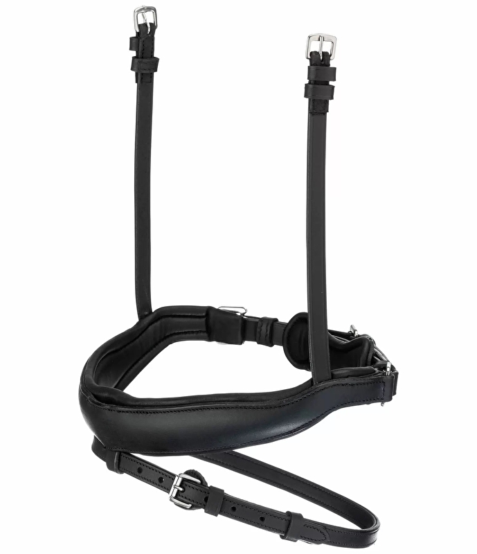 Szeroki, anatomicznie ukształtowany szwedzki nachrapnik z wypinanym skośnikiem. SKośnik można łatwo włożyć lub zdjąć z nachrapnika za pomocą trójnika. Żadna irytująca skórzana końcówka nie pozostaje widoczna po zdjęciu. Miękka wyściółka z prawdziwej skóry na nachrapniku Wykonane z wieloolejowanej skóry o przyjemnie miękkiej jakości. Okucia w kolorze srebrnym.