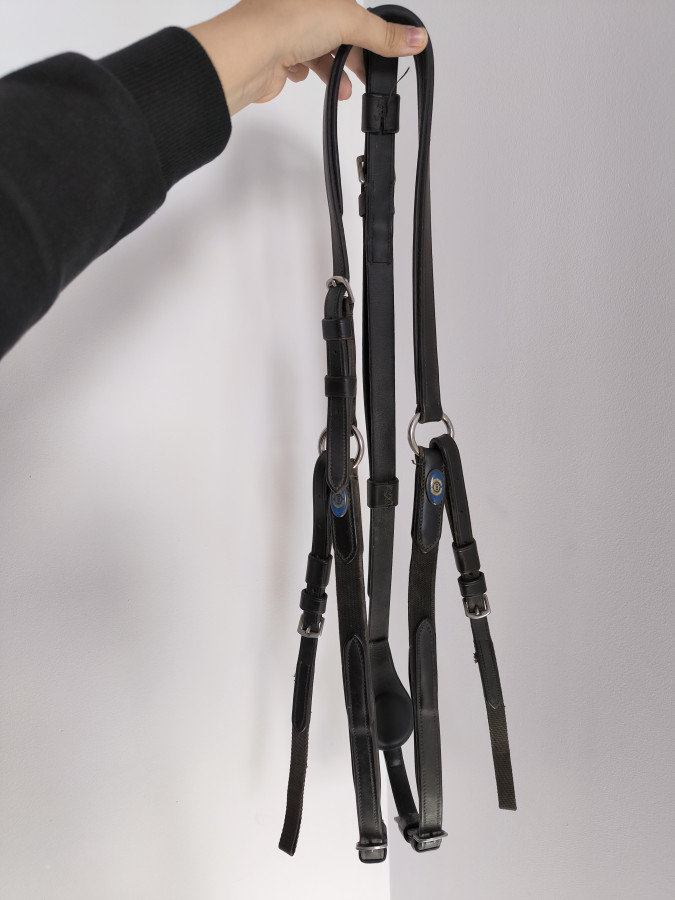 Napierśnik ps of sweden. Kultowa marka a sam napierśnik to perełka. Kolor to ciemny brąz. Skóra bardzo dobrej jakości mimo że używane to uważam że jest dobrze zachowana. Należy ją wypielęgnować i napewno posłuży jeszcze długi czas. Na sporo regulacji. Jedyna wada jest naderwanie jednego szwu na szlufce od popręgu. Poza tym nie ma innych wad jest tylko do wyczyszczenia. Rozmiar Full..