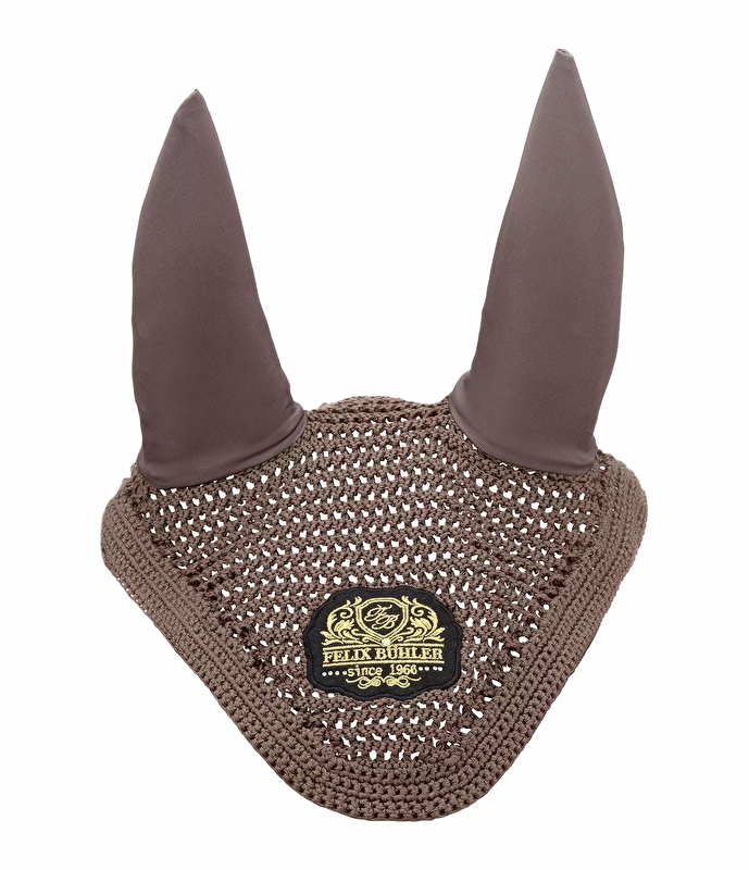 Eleganckie, szydełkowanenauszniki z elastycznymi częściami nausznymi zapewniającymi wysoki komfort noszenia. Z 2 elastycznymi zaciskami KV do mocowania do oglowia.wygląda wyjątkowo dzięki eleganckiemu, złotemu haftowi z logo. 100% poliester.