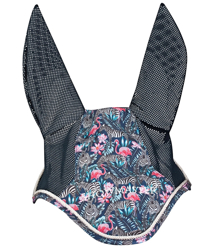 Nauszniki wykonane z lekkiego materiału siatkowego z szeroką, błyszczącą wstawką z nadrukiem w dżungli i ozdobnym sznurkiem. Dwa elastyczne zapięcia na rzepy ułatwiają przymocowanie do ogłowia. 100% poliestru.