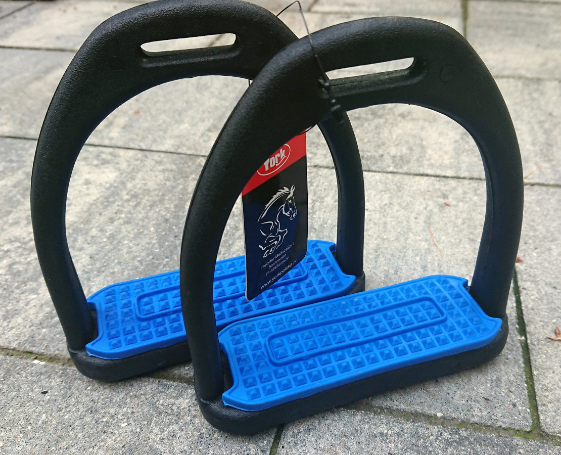 NOWE lekkie strzemiona z kompozytu z wkładkami, czarne/niebieskie OD RĘKI!