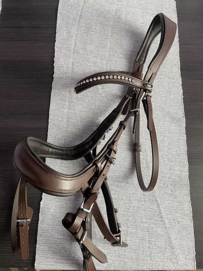 Sprzedam nowe, tylko przymierzone ogłowie Anatomiczne Balotade Andiamo w rozmiarze COB. Brązowe, nieużywane, skóra nie wyrobiona, mięciutka, świetnej jakości, kompletne. Jedyny defekt to niedoszyta jedna szlufka-takie już przyszło, nie będzie przeszkadzało w użytkowaniu. Okucia w kolorze srebrnym ze stali nierdzewnej.