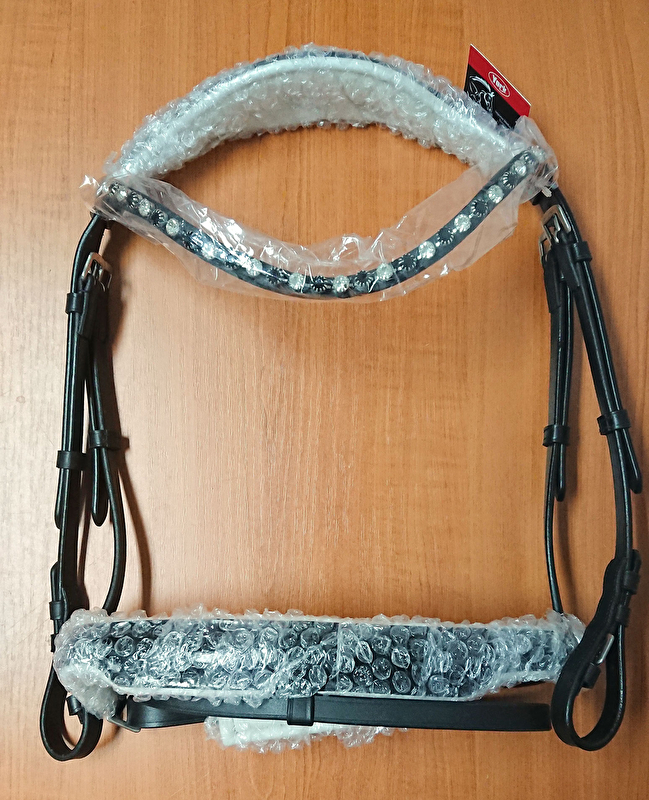 - opadający naczółek z dwukolorowymi kryształkami oraz lakierowana skóra na nachrapniku nadają niepowtarzalnego charakteru