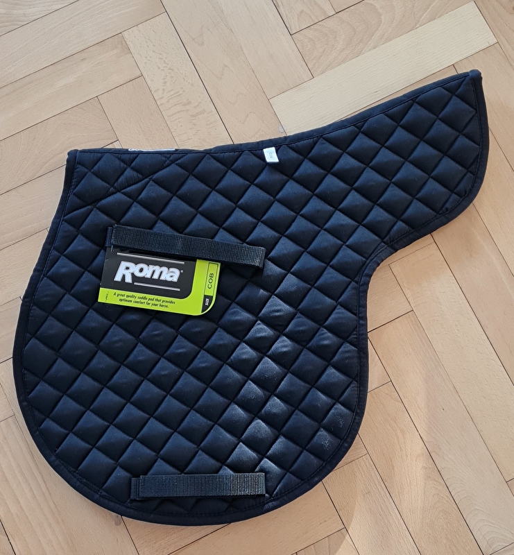 Sprzedam nowy, jeszcze z metką czaprak skokowy koloru czarnego. Zdjęcia nie oddają prawdziwego koloru. Firmy Roma pod mniejsze siodło 16 cali. Czaprak ma śliczny biały kożuszek po wewnętrznej górnej części. Osoby zainteresowane zapraszam do kontaktu, podeśle wymiary. Gorąco polecam.