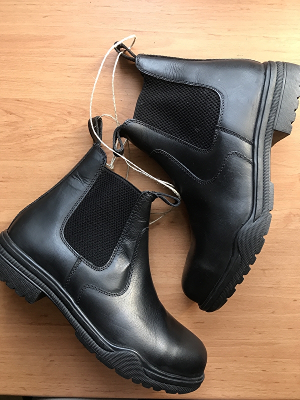Wsuwane botki z cholewką z woskowanej skóry i oddychającą tekstylną podszewką (100% poliester). Elastyczne wstawki po obu stronach oraz dwie pętle do ciągnięcia umożliwiają szybkie zakładanie i zdejmowanie. Profilowana podeszwa z piętą jeździecką wykonana jest z antypoślizgowej gumy. Rozmiar standardowy.
