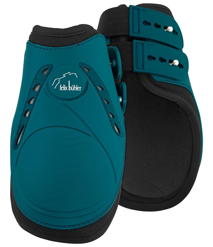 Sportowe, innowacyjne ochraniacze typu fetlock dla najwyższych wymagań i optymalnego komfortu. Wyloty powietrza na zewnątrz oraz miękka i perforowana podszewka z gumy chloroprenowej zapewniają optymalną cyrkulację powietrza. Odporna na uderzenia powłoka zewnętrzna wykonana z TPU z dodatkową ochroną. Wytrzymałe, szybko zwalniane zapięcia dla łatwej obsługi na kołki.