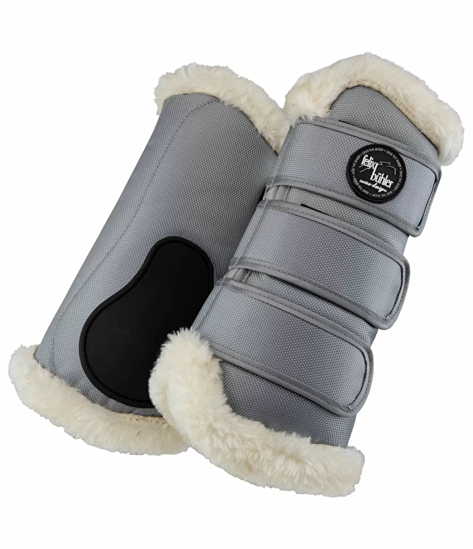 Wszechstronne ochronne buty ujeżdżeniowe na przednie nogi z przytulnym obszyciem z pluszowego polaru, aby uniknąć otarć i miękką wyściółką wewnętrzną. Zintegrowana twarda powłoka chroniąca przed uderzeniami wzdłuż ścięgien i dodatkowa ochrona paska TPU w okolicy kostki. Potrójne KV dla bezpiecznego trzymania i optymalnej regulacji rozmiaru. Materiał zewnętrzny 100% poliester, twarda skorupa 100% TPU, wewnątrz 100% guma chloroprenowa.