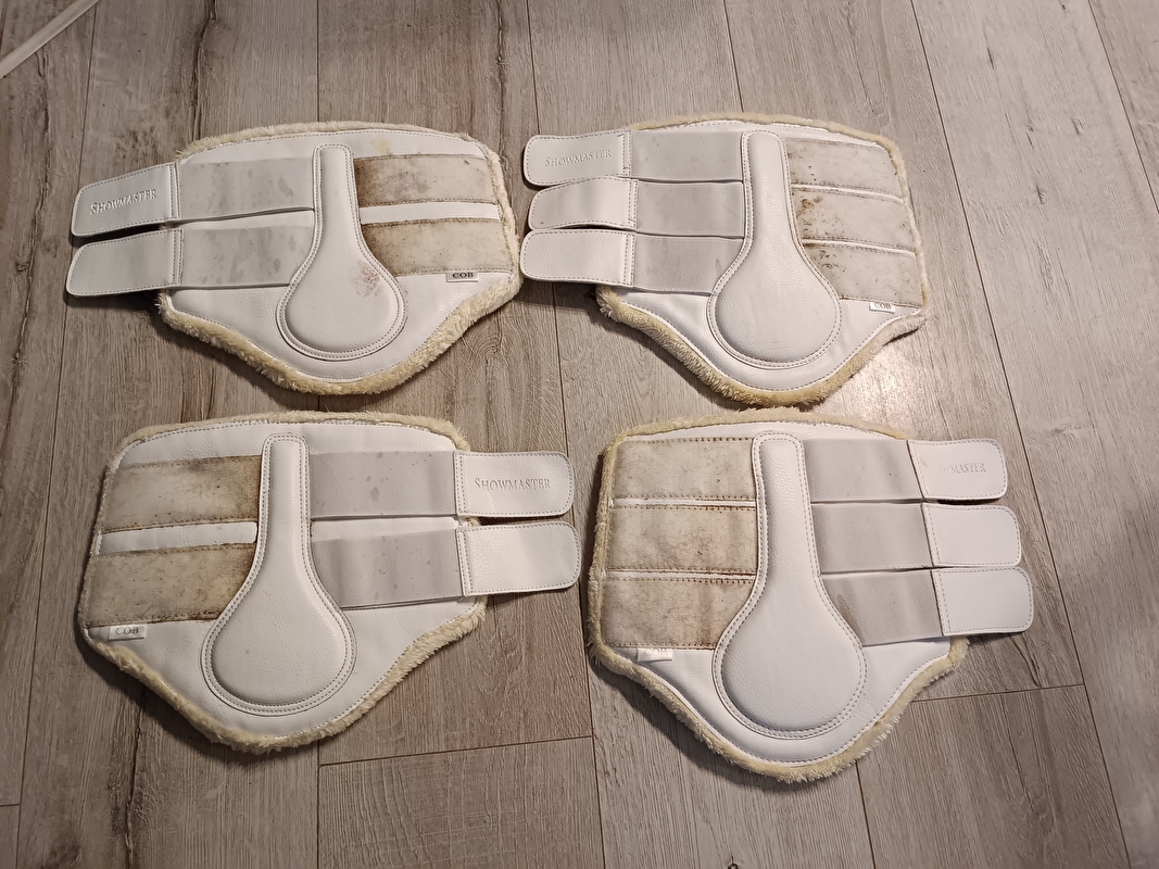 Na sprzedaż ochraniacze futerkowe Felix Bühler, użyte dwa razy - niestety zabrudzenia po kontakcie z kałużą nie zeszły, więc nie nadadzą się już raczej na zawody. Jednak są w doskonałym stanie i dobrze sprawdzą się jako ochraniacze treningowe. Rozmiar to duże pony/mały cob.