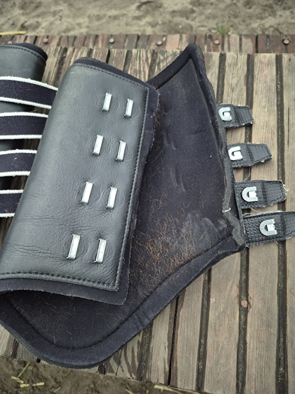 2 pary ochraniaczy szwajcarskiej firmy, nr 2(cob) i nr 4(full). Stan dobry, jak na zdjęciach. Jeden z ochraniaczy delikatnie uszkodzony neopren, nie przeszkadza w użytkowaniu. Na sprzedaż komplet lub odrębnie, w parach. Cena do negocjacǰi. Przed wysyłką wyczyszczę z sierści