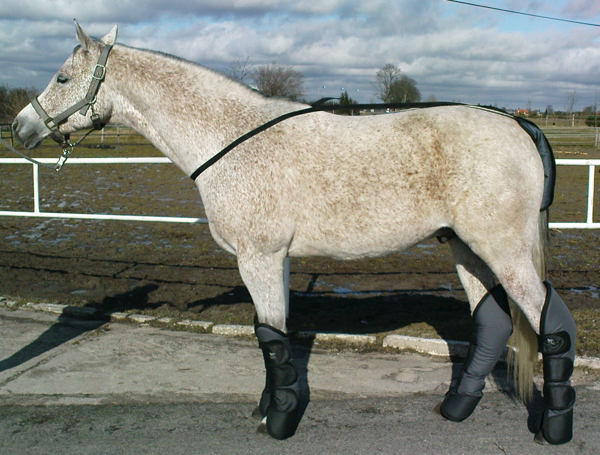 Ochraniacze Exclusive użyte do zrobienia zdjęć, więcej nie używane. Kilka razy użyty ochraniacz na ogon, ale też w stanie bardzo dobrym, wyprany. Ochraniacze w idealnym stanie, wewnątrz obszyte mięciutkim polarem, z zewnątrz materiał oddychający, wodoodporny, przy kopytach wzmocniony cordurą.