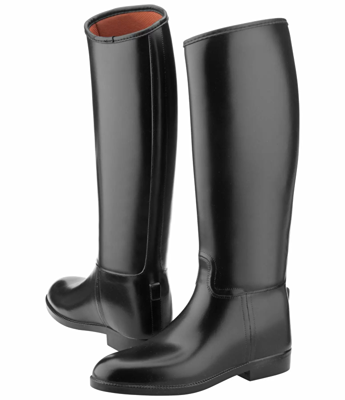 Eleganckie długie buty jeździeckie wykonane z PVC. Idealne dopasowanie, wodoodporność i łatwość czyszczenia.