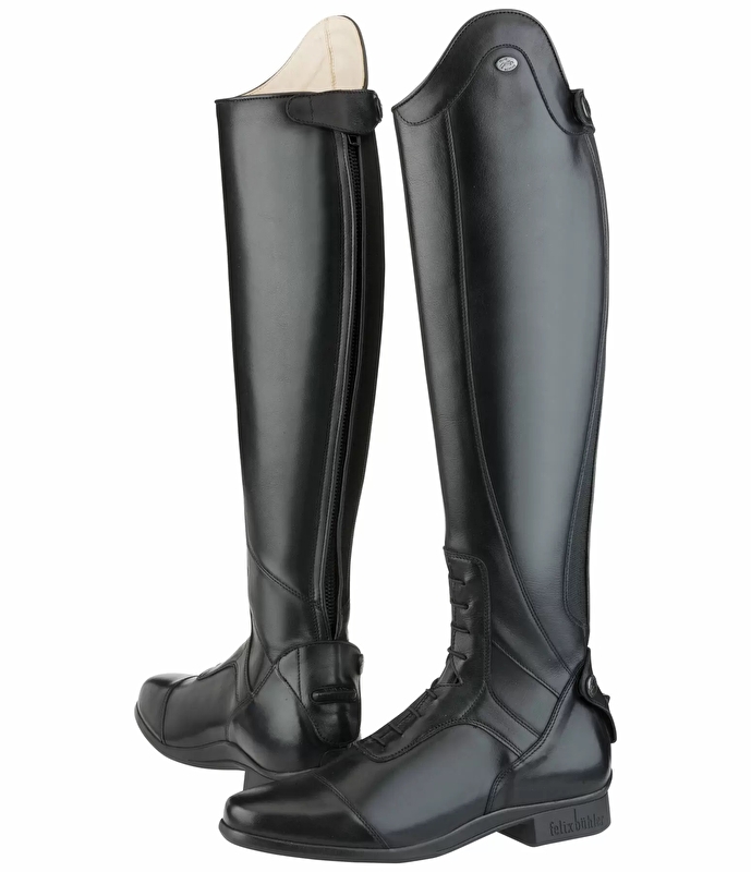 Najwyższej klasy oficerki sznurowane wykonane z włoskiej skóry bydlęcej licowej, która jest przyjemnie miękka, a jednocześnie bardzo trwała. Wewnętrzna wyściółka wykonana jest z miękkiej świńskiej skóry. Niezwykle wytrzymały zamek błyskawiczny (YKK nr 10) z tyłu gwarantuje długą żywotność. Wąskie linie w obszarze kostki i eleganckie szwy na cholewce nadają jeźdźcowi smukłą nogę, a elastyczne sznurowanie na podbiciu zapewnia niezbędną elastyczność na niskim obcasie. Obszar stopy ma smukły kwadratowy kształt i jest wyposażony w wygodną wkładkę, technologię Comfort Footbed, która składa się z wielowarstwowej wkładki i misternie zaprojektowanej podeszwy zewnętrznej wszytej w cholewkę buta. Kolejnym szczegółem jest wbudowany uchwyt ostrogi na osłonie ostrogi. Najlepsza jakość, wyprodukowano w Portugalii.
