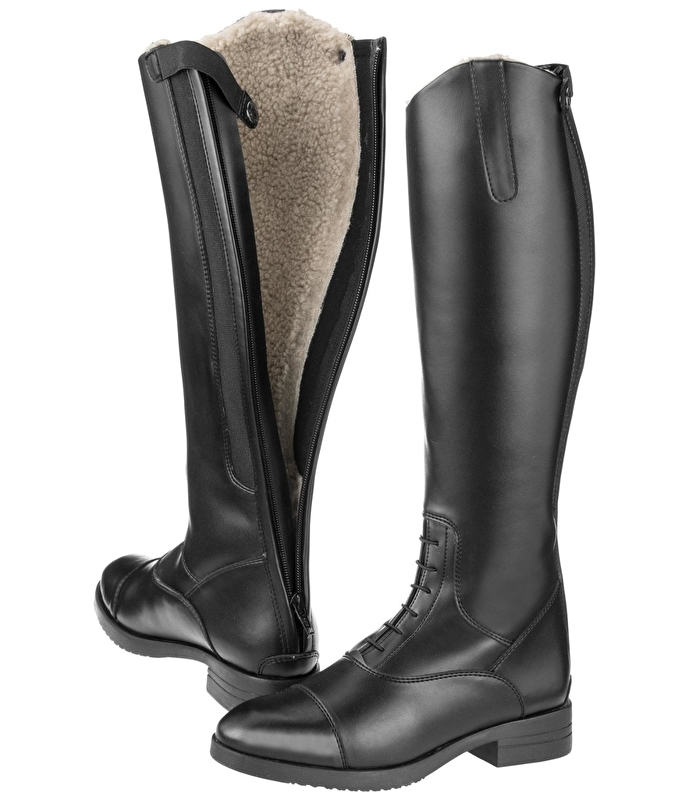 Zimowe buty jeździeckie wykonane z miękkiego materiału wierzchniego SYLKA (syntetyczna skóra o dużej sprężystości, łatwa do czyszczenia). Wewnątrz w całości podszyty ciepłym pluszowym polarem (100% poliester). Teraz w eleganckim, dopasowanym kroju w obszarze stóp. Anatomicznie ukształtowany obszar kostki z elastycznym sznurowaniem i elastycznymi wstawkami po obu stronach cholewki zapewniają optymalne dopasowanie i wysoki komfort noszenia. Zamek błyskawiczny YKK z tyłu z zatrzaskiem na cholewce, który zapobiega otwieraniu się zamka podczas jazdy. Antypoślizgowa gumowa podeszwa zewnętrzna z piętą, która nadaje się do jazdy.