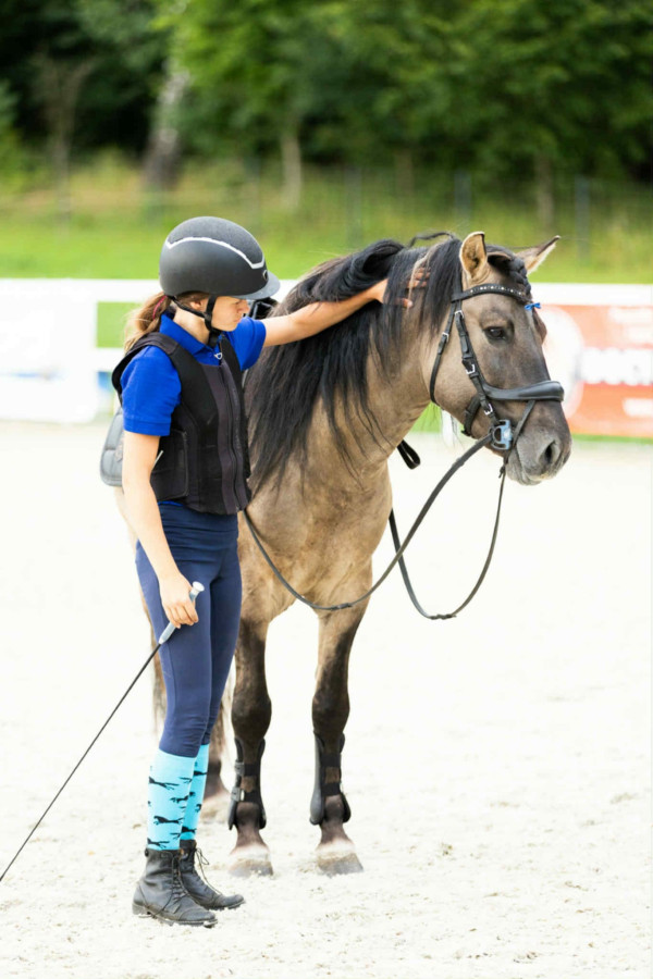 Zajezdzony w 3 chodach, ostatnio jeżdżony latem 2024 ale nie ma problemów z wsiadaniem po przerwach, chodzi w tereny z klaczami w rekreacji pod zaawansowanymi. Swego czasu również naskakiwany na placu do 80cm. Krył zarówno w tabunie jak i z ręki. Grzeczny w obejściu spokojnie ogarniają go dzieci.