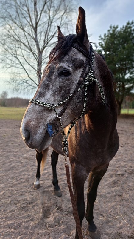 Najchętniej pracuje na halterze, ale wędzidło również jest dla niego intrygujące.