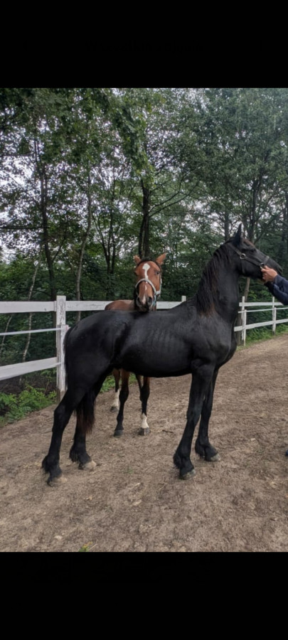 Witam.Sprzedam ogierka fryzyjskiego urodzony czerwiec 2024 koń jest bardzo grzeczny nauczony wszystkich zabiegów pielęgnacyjnych wchodzenia do przyczepy aktualny wzrost około 145 cm polski paszport Ojciec SENOR V HARMKE matka do obejrzenia na miejscu MOGE WYMIENIĆ NA KONIA W TYPIE SPORTOWYM więcej info pod nr tel 889836127 cena 11 tyś