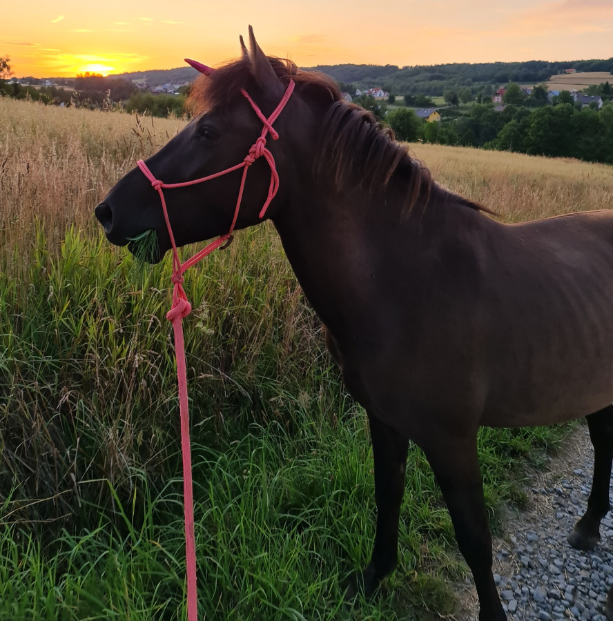 Zdrowy, nigdy nie chorował, na wolnym wybiegu, stoi z klaczami i drugim ogierkiem. Spokojny, chodzimy na spacery na uwiązie, nie ma problemu z odejściem od stada. Nigdy nie wykazywał agresji, prób dominacji. Po rodzicach programowych, można próbować uznać na ogiera.