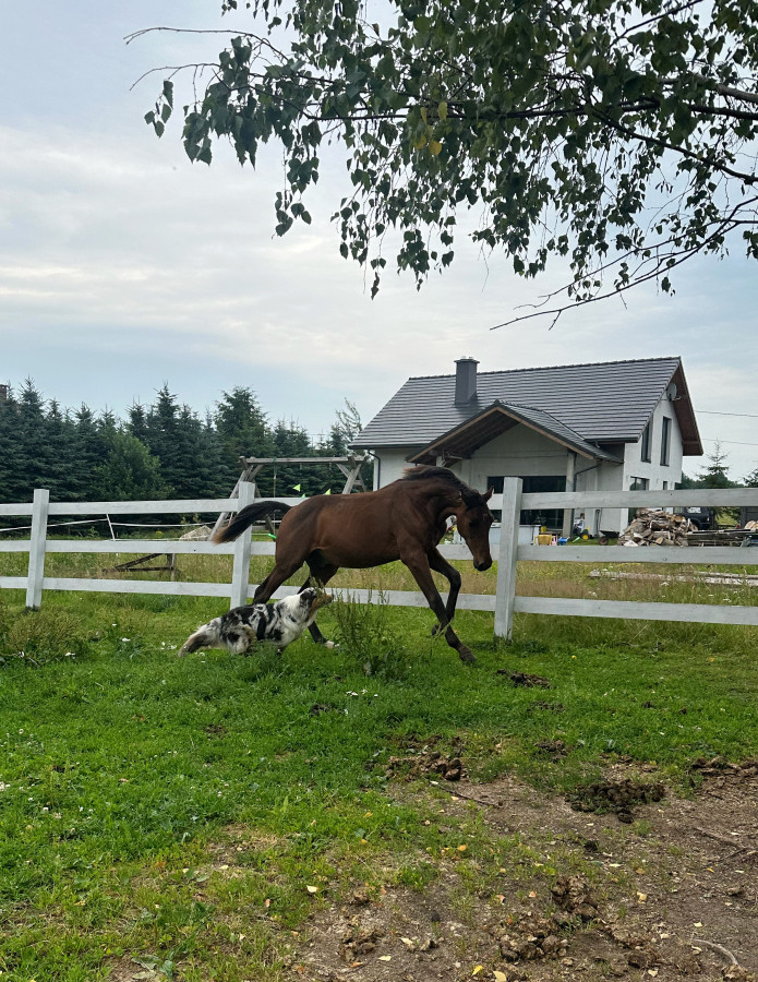 Ogierek ma ładny ruch i duże predyspozycje skokowe, do tego wspaniały charakter - pewny siebie , ciekawski , odważny , lubi kontakt z człowiekiem. Obecnie ma 13 miesięcy .