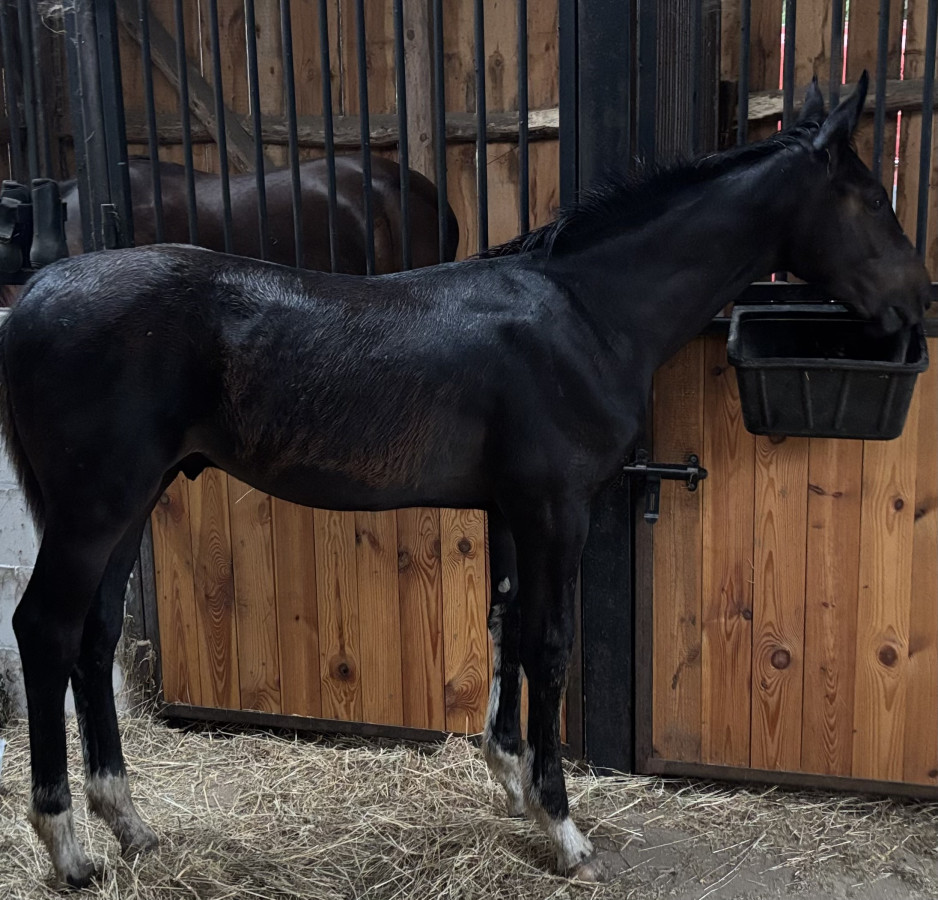 Volverine to mocny duży koń, odważny, zadziorny i wesoły źrebak. Wychowywany w stadzie na pastwiskach, bez problemu zostaje sam w boksie - mama w treningu. Przyszłościowy koń do skoków. Skarogniady z czterema równymi skarpetkami. Urodzony w marcu tego roku, także odbiór pod koniec września.