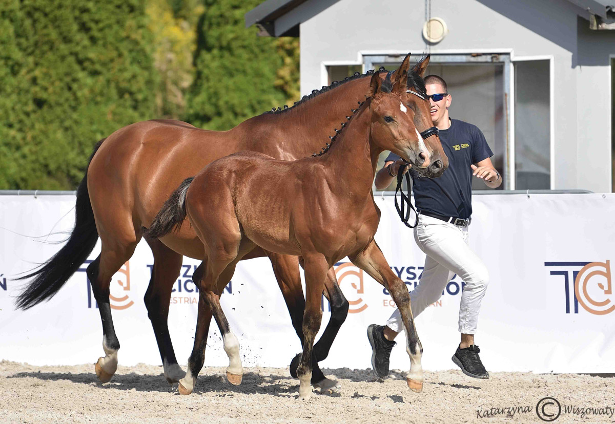 Matka: CALLISTO klacz urodzona w 2021r. Con Spirito jest jej pierwszym źrebięciem. Bardzo dynamiczna pod siodłem, z elastycznym ruchem i dużą siłą skoku. Brała udział w Czempionatach Młodych Koni, gdzie sędziowie szczególnie doceniali jej technikę skoku oraz typ i budowę! W ogłoszeniu dodano jej zdjęcie z V Otwartego Czempionatu Źrebiąt i Koni Raz Szlachetnych w Salio. Klacz po ogierze Leonardo da Vinci J.P.P. startującym w konkursach 135-140cm, w których zachwyca niesamowitymi możliwościami skokowymi! Ogier reprezentował Polskę w Mistrzostwach Świata Młodych Koni w Lanaken 2022. Obecnie kontynuuje swoją karierę sportową w renomowanej stajni Stal Hendrix.