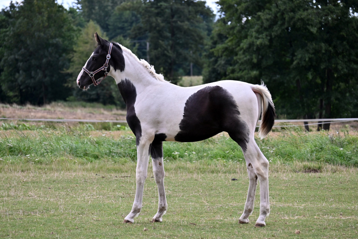 Sprzedam srokatego ogierka urodzonego 05.02.2025. Obecny wzrost to około 149 cm, zapowiada się na wysokiego, dobrze zbudowanego konia. Ogierek wiązany, prowadzany na uwiązie, grzeczny, kontaktowy. Ojcem ogierka jest karosrokaty Dolar sp (174 cm wzrostu), a matką wielkopolska klacz G-Łatka (176 cm wzrostu). W celu wyslania filmików z ruchu porsze o kontakt. Więcej informacji pod telefonem.
