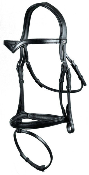 Ogłowie z nachrapnikiem angielskim z kolekcji Icelandic. Kolekcja Icelandic charakteryzuje się przeszyciami w kolorze skóry i srebrnymi okuciami. Posiada naczółek V. Klamerki ze stali nierdzewnej. Dostępne w kolorze czarnym