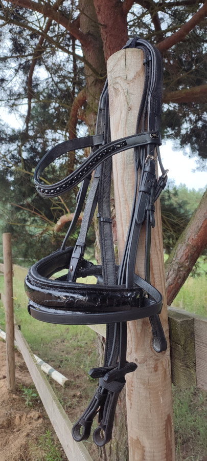 Ogłowie Start WODEN lakierowany szwedzki nachrapnik, profilowana potylica, naczółek cudo, z wodzami 45 ZŁ TANIEJ NIŻ W SKLEPIE!