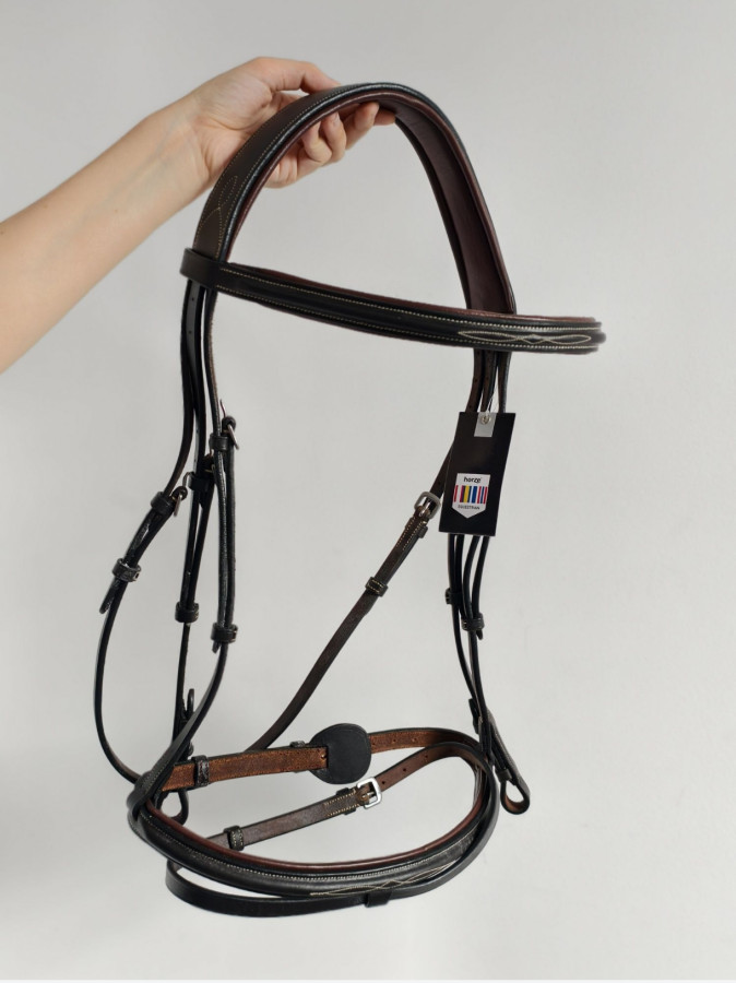 Wysokiej jakości ogłowie skórzane firmy Horze model Sparta. Eleganckie ogłowie wykonane z najwyższej jakości miękkiej skóry. Doskonałe dla osób ceniąch sobie klasyczną elegancję. Ogłowie nachrapnik angielskim ze skośnikiem. Ogłowie posiada modnie wyszyty jasną nicią ścieg, który dokonale zdobi ogłowie.