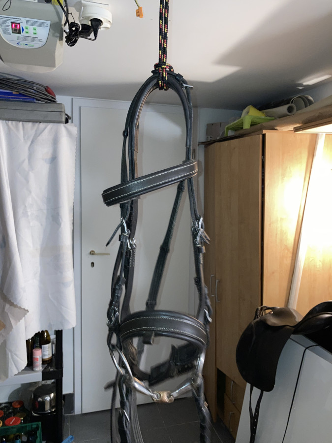 Sprzedam brązowe ogłowie marki Horze rozmiar pony, nachrapnik szwedzki wraz z wędzidłem oliwkowym podwójnie łamanym w rozmiarze 11,5cm z miedzianym łącznikiem. Mogę też obydwie rzeczy sprzedać osobno. Zarówno ogłowie jak i wędzidło nie posiadają żadnych wad poza tymi wynikającymi z normalnego użycia, widocznymi na zdjęciach. Używane były ogólnie raczej niezbyt dużo i intensywnie. Regularnie konserwowana i czyszczona skóra. Od pół roku leży i się kurzy w szafie. Mogę się wymienić za niewielką dopłatą za inne ogłowie w kolorze brązu, ale w rozmiarze full lub duży cob. Możliwość sprzedaży przez vinted/olx.