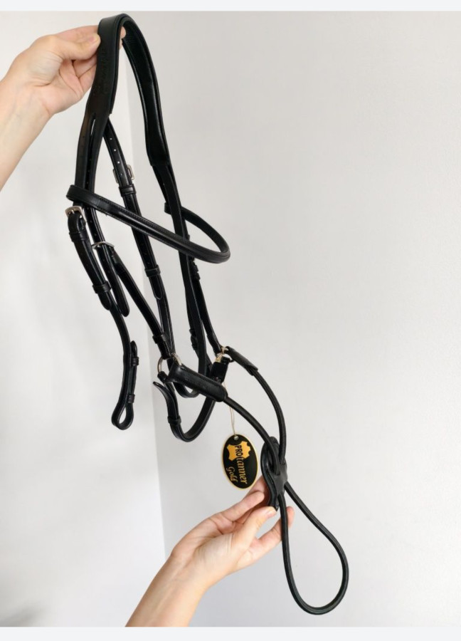 Sprzedam nowe ogłowie meksykańskie marki ProTanner. Wykonane z skóry bawolej wysokiej jakości w kolorze czarnym.