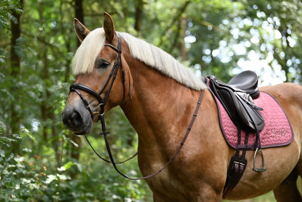 Bardzo atrakcyjne ogłowie ze zwężanym nachrapnikiem i szwedzką klamrą. Ogłowie charakteryzuje się wyjątkowo miękkim wypełnieniem na nachrapniku i zakrzywionym naczółkiem.