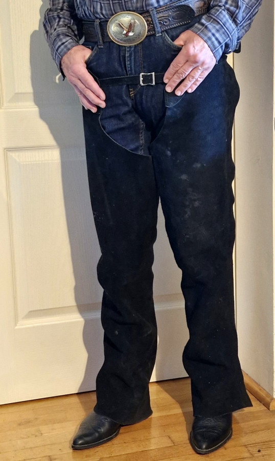 Praktyczne spodnie do jazdy konnej. Ułatwione zakładanie - suwak po zewnętrznej stronie. Nakładane na jeansy chronią je przed przecieraniem, końską sierścią i błotem. Używane również przez podkuwaczy zamiast fartucha kowalskiego chroniąc nogi przed zacięciem nożem podczas pracy.