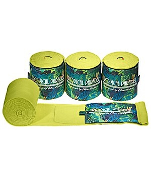 Miękkie bandaże z polaru z szerokim zapięciem na rzep i wzorem Tropical Paradise. 100% poliestru.
