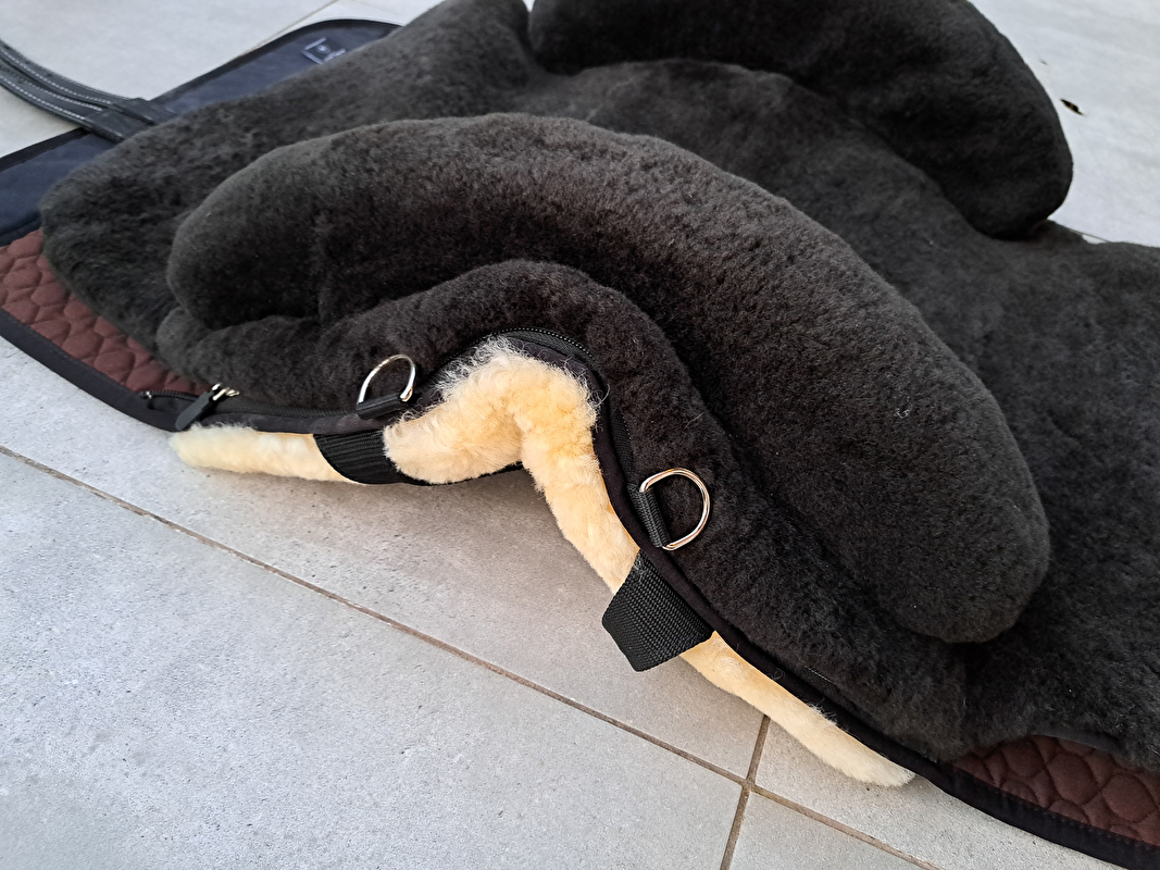 "The bareback pad in the Spanish style. The seat is made entirely of lambskin. The higher cantle and pommel provide additional stability. Composite foam inserts will ensure that you not only sit comfortably but that the pad is nice and comfortable for your horse too.