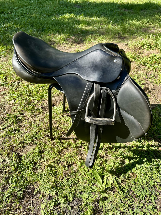 Siodło posiada płytkie, ale jednocześnie szerokie i wygodne siedzisko. Tybinki są wykonane z nowoczesnej skóry licowanej, która ma doskonałe właściwości antypoślizgowe i nadaje temu modelowi wyjątkowy wygląd. Poduszki kolanowe są wykonane z antypoślizgowej, podwójnej skóry olejowanej.
