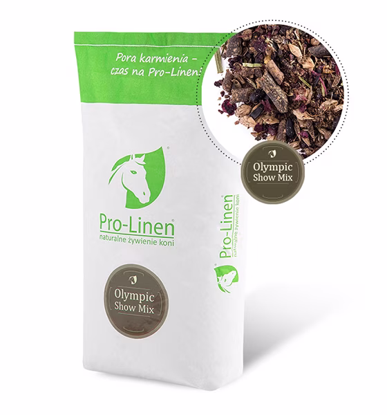 Pro-Linen Olympic Show Mix™ to pasza pełnoporcjowa dedykowana przede wszystkim koniom użytkowanym w dyscyplinie skoki przez przeszkody. Chcąc uniknąć u koni efektu nadpobudliwości dostarczając im równocześnie paliwa do pracy wprowadzono do mieszanki lucernę, wysłodki buraczane i łuski sojowe – włókniste komponenty o niskiej zawartości skrobi, będące jednocześnie źródłem bezpiecznej energii.