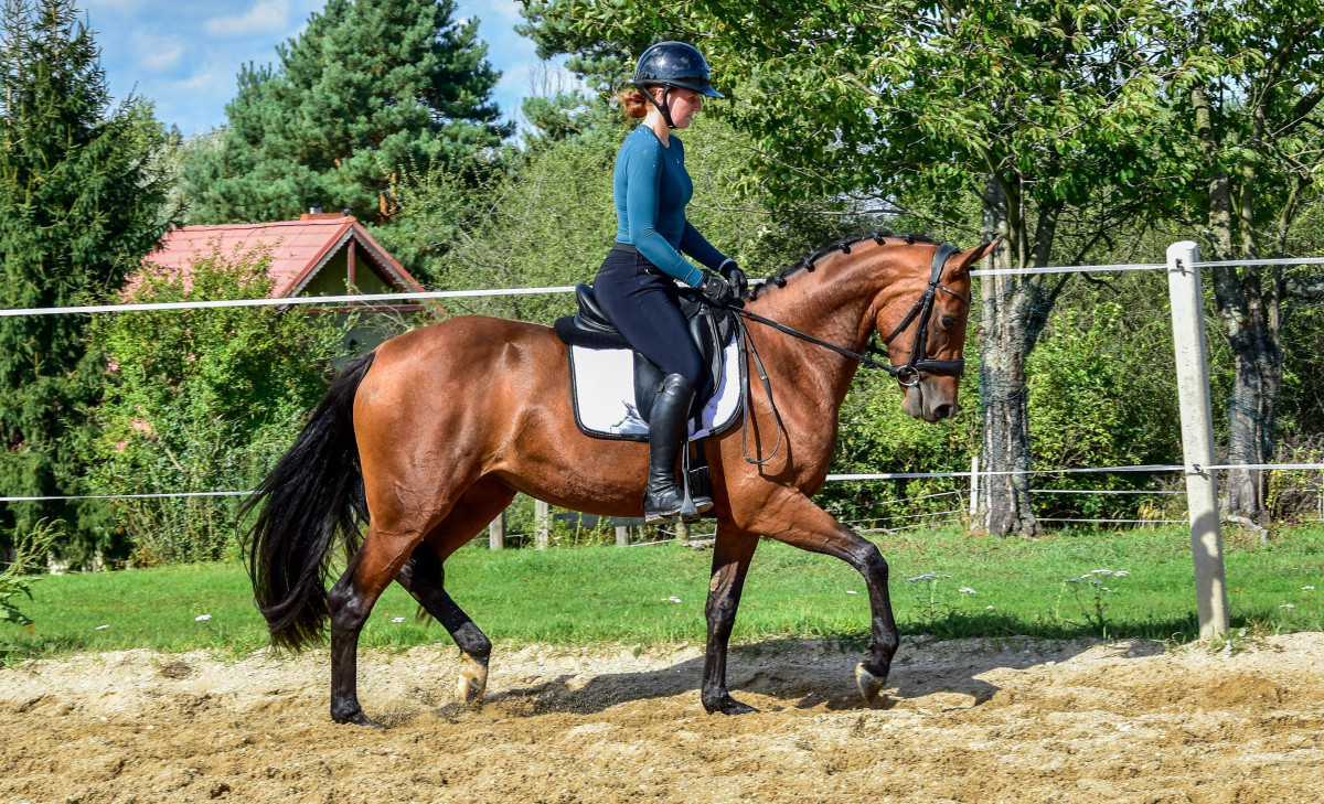 Sprzedam piękną gniadą 4 letnią klacz o bardzo dobrym rodowodzie. Klacz jest zajeżdżona, chodzi w trzech podstawowych chodach, charakteryzuje się obszernym ruchem i dużym potencjałem skokowym (w ciągłym treningu pod zawodnikiem WKKW). Bezproblemowa w obejściu i pod siodłem, nie bryka, nie ponosi. Padokowana w stadzie. Klacz ma predyspozycje skokowe ze względu na bardzo dobrą technikę skoku i chęci do pracy. Odrobaczona i szczepiona, regularnie pod opieką weterynarza. Sprzedaż z powodu redukcji stada. Film z ruchu do wglądu.