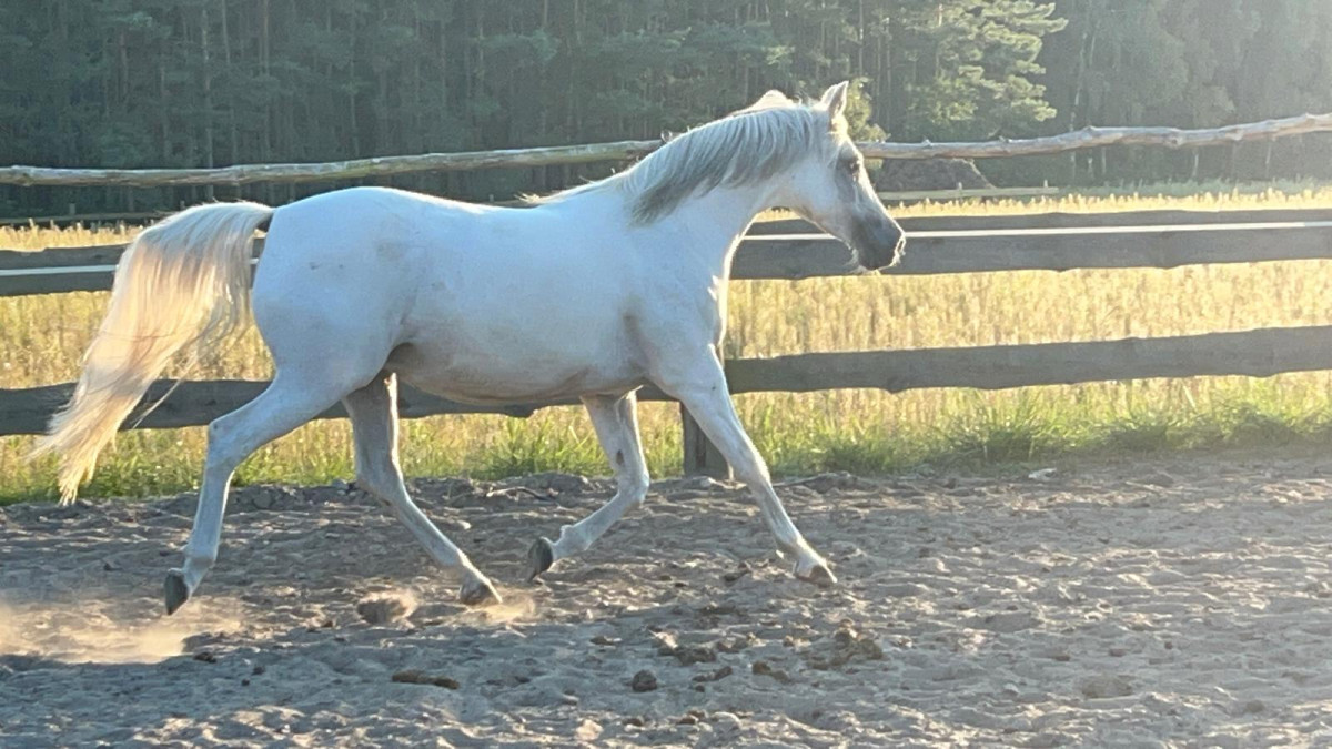 klacz Diora (Demara-bis / Polon) 15 lat o unikatowym rodowodzie i urodzie, wyróżniająca się łabędzią szyją, eleganckim i harmonijnym ruchem. Klacz jest niezwykle urodziwa z charyzmą i piękną kłodą, łabędzią szyją, ciemnymi, atłasowymi oczami. Jej ruch jest elegancki, sprężysty i - to kwintesencja - klasycznych cech ,,arabskich''.