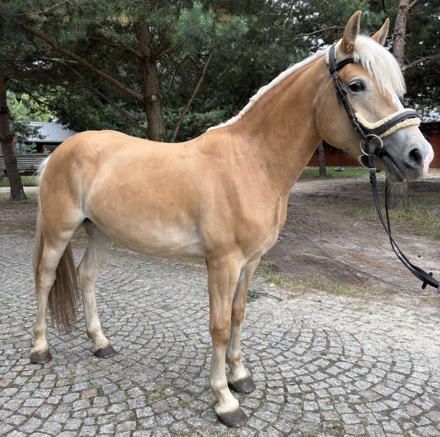 Sprzedam 2letnią klacz (04.05.2023) rasy Haflinger po bardzo dobrym ogierze STARKEY VAN SEADRIFT. Klacz ma pełne obustronne pochodzenie. Przyjęła siodło, umie chodzić na lonży, podaje nogi. W obejściu, przy kowalu i weterynarzu grzeczna i bezproblemowa, typ misia. Zdrowa, nie kontuzjowana, bez narowów. Padokowana w stadzie, bez problemu przechodzi przez rzekę. W przeszłości idealny koń rodzinny, dla dzieci.