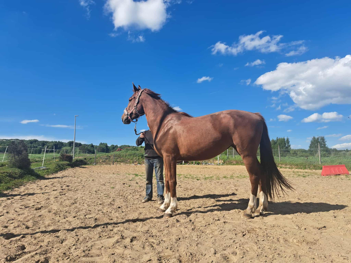 Klacz jest totalnym miśkiem z wyglądu, z charakteru i pod siodłem. Jest bezproblemowa w obsłudze, przy zabiegach pielęgnacyjnych i przy kowalu.
