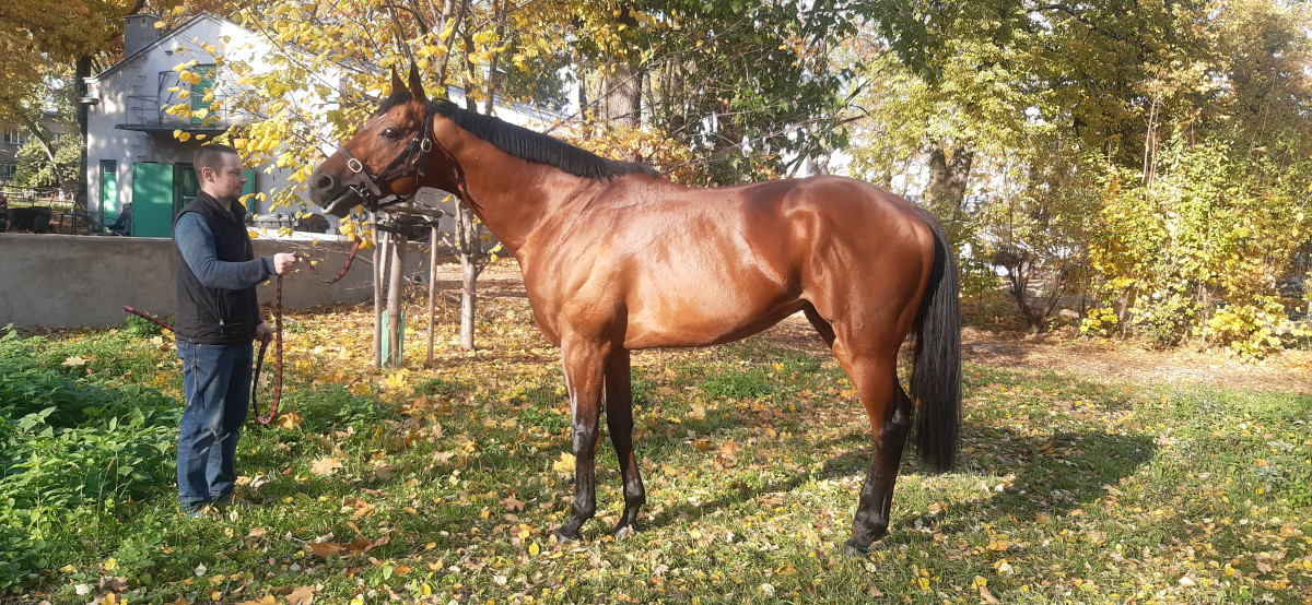Cały czas w treningu wyścigowym, jest w pełni zdrowy, nigdy nic mu nie dolegało. Regularnie szczepiony i odrobaczany. Jest bardzo przyjemny do jazdy choć w boksie potrafi dominować ale myślę że po wykastrowaniu całkowicie przejdą mu te zapędy. Bez nawyków takich jak tkanie,łykanie itd