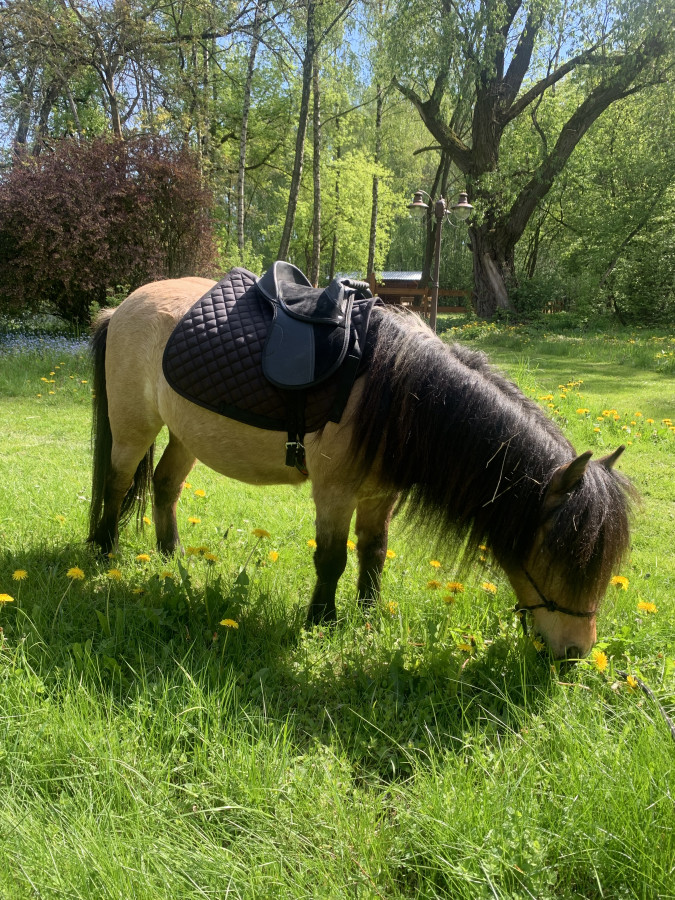 U nas głównie dotrzymywał towarzystwa innym koniom ale od czasu do czasu wsiadała na oprowadzanie moja córka.