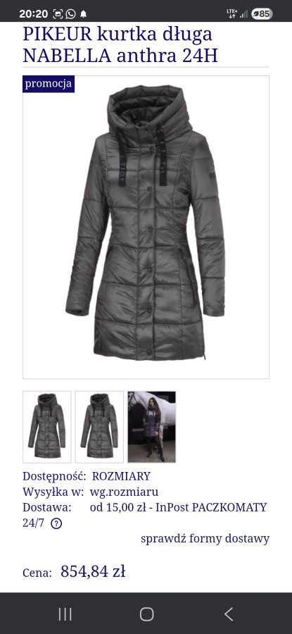 Na sprzedaż mam zimowy płaszcz jeździecki, renomowanej marki PIKEUR, model NABELLA w kolorze Anthracite.