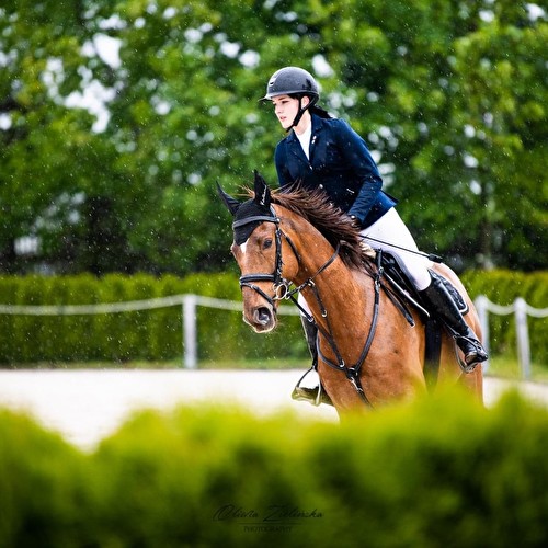Billy ma 12 lat i 167 cm wzrostu. * Rasa: Irlandzki Koń Sportowy. Koń wprowadził mnie w świat zawodów, zdałam na nim licencję. Zadebiutował w N1 pod amatorem. Aktualnie naskakany do P. Zawsze po drugiej stronie, idący do przeszkody. Nie wyłamuje. Potrafi elementy ujeżdżeniowe. Odważny, chodzi w tereny sam jak i z innymi końmi. W obsłudze bezproblemowy, grzecznie stoi. Nie bryka, nie ponosi. Jest nieufny przy wsiadaniu przy nowych osobach. Koń jest pod stałą opieką weterynarza, kowala i fizjoterapeuty. Kuty na przody. Posiada aktualne RTG