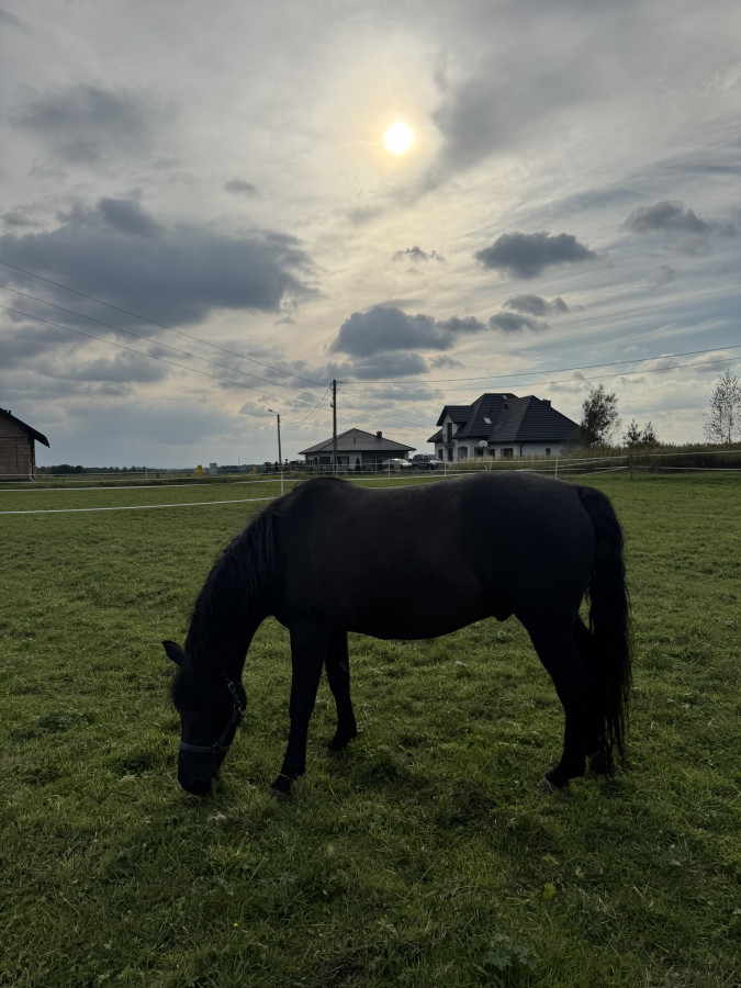 Grzeczny , podaje nogi , ma urodziwe kopyta , zdrowy w 100%, przyzwyczajony do kowala , chodzi boso , grzeczny w transporcie.