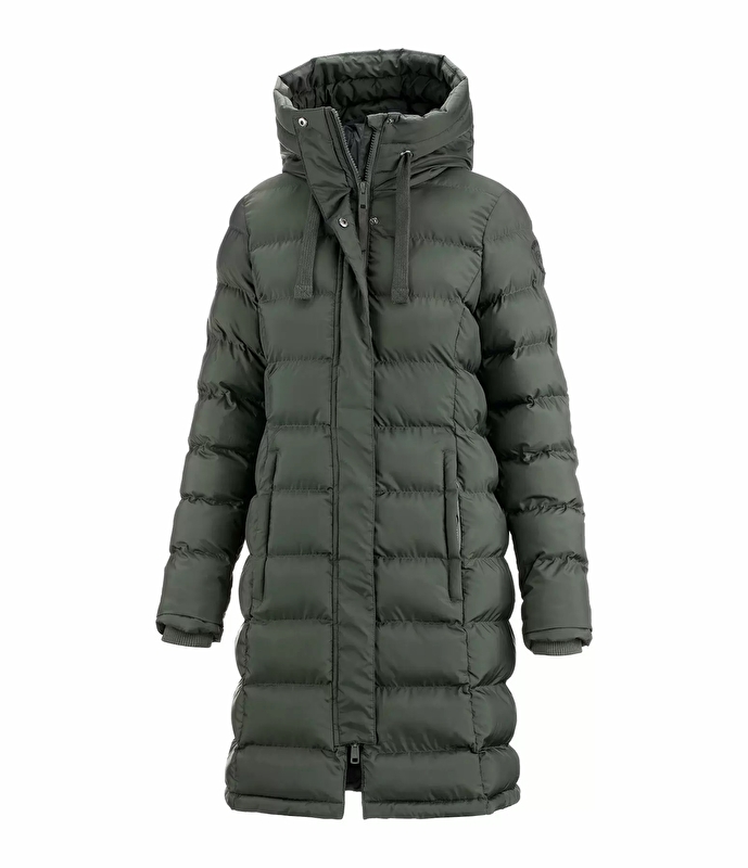 Niezwykle ciepły, długi i super nowoczesny płaszcz jeździecki! Miękka wyściółka z imitacji puchu, bardzo wysoki, regulowany, a także ocieplany kaptur, który można przymocować z tyłu. Ukryty dwukierunkowy zamek błyskawiczny z przodu, 2 ukryte kieszenie na zamek z przodu wyłożone miękkim polarem. Wiatroszczelna i wyjątkowo ciepła. Mankiety wykonane z miękkiego, prążkowanego materiału i długi, wyściełany rozporek do jazdy z zamkiem błyskawicznym z tyłu. Wysokiej jakości haft Felix Bühler na rękawie.