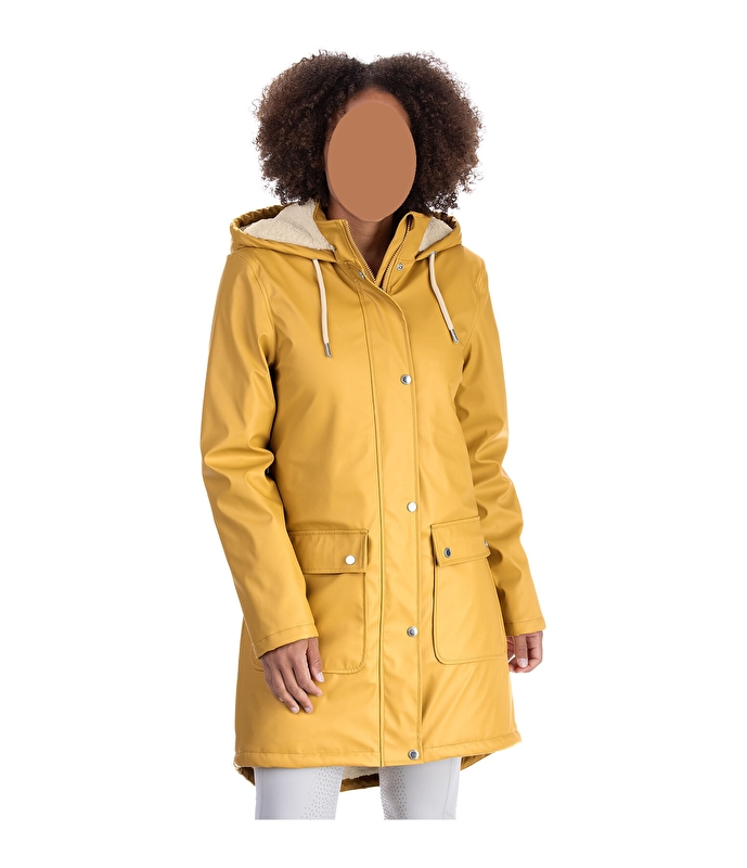 Super stylowy płaszcz przeciwdeszczowy z kapturem i ciepłym wnętrzem wykonanym z miękkiego pluszowego futerka. Wodoodporna (8000 mm) i wiatroszczelna. Idealny również na jazdę na rowerze lub spacery z psem. Ukryty dwukierunkowy zamek błyskawiczny z osłoną podbródka, 1 kieszeń wewnętrzna na zamek, 2 kieszenie z klapką na zatrzaski z przodu, regulowany kaptur, również podszyty pluszowym futerkiem z możliwością przymocowania z tyłu, dłuższy krój z tyłu z 2 rozcięcia do jazdy konnej zapinane na zatrzaski, nadruk Felixa Bühlera na rękawie. Na zewnątrz 100% poliuretan, wewnątrz 100% poliester.