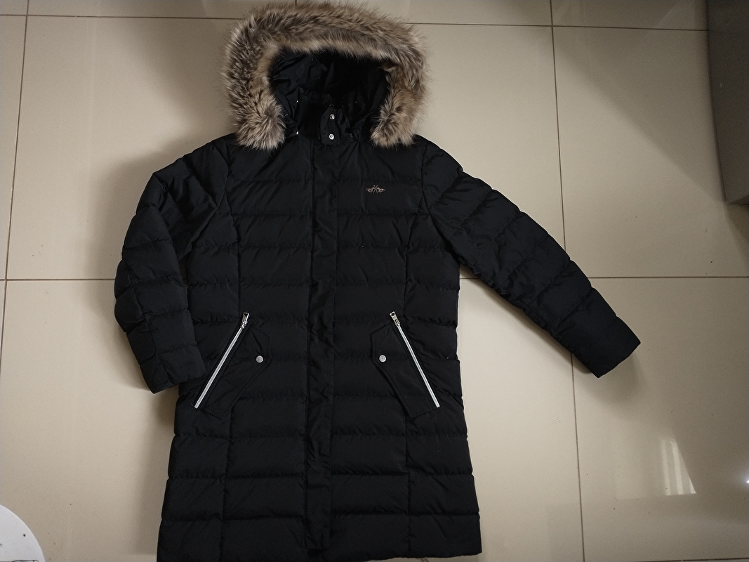 Sprzedam zimową kurtkę/ płaszczyk firmy HV POLO model 'Debben' w kolorze czarnym, rozmiar 44. Odpinany kaptur jak i futerko na kapturze. Kieszenie na zamki. Z tyłu rozsuwany. Bardzo ciepły. Wypełnienie 70% puch 30% piór. Stan bdb, jak nowy. Przy kołnierzu brakuje dodatkowego futerka. Cena 700zł + wysyłka. Wszelkie przebarwienia to wina światła.